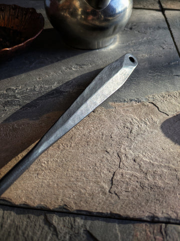Pas toutes les louches sont forgées égales. Forgée à la main à partir d’acier inoxydable 304 et 316, cette louche combine la robustesse d’un outil colonial et l’élégance d’un design moderne. Le manche, au fini noir de forge, s’agence parfaitement au bol martelé et poli, le tout solidement riveté au cuivre — parce que même la soupe mérite un peu de panache.